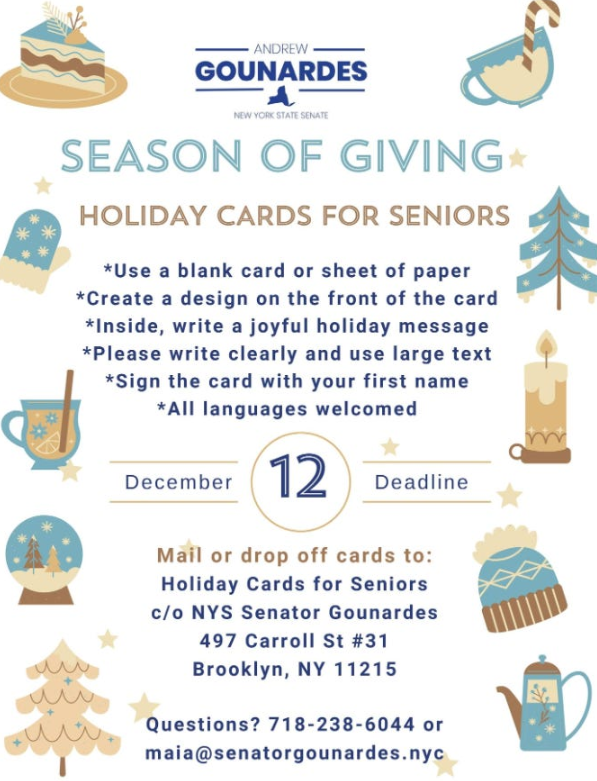 Bring all your extra fun paper, markers, glitter, water colors, or whatever you like to make fun cards for seniors!